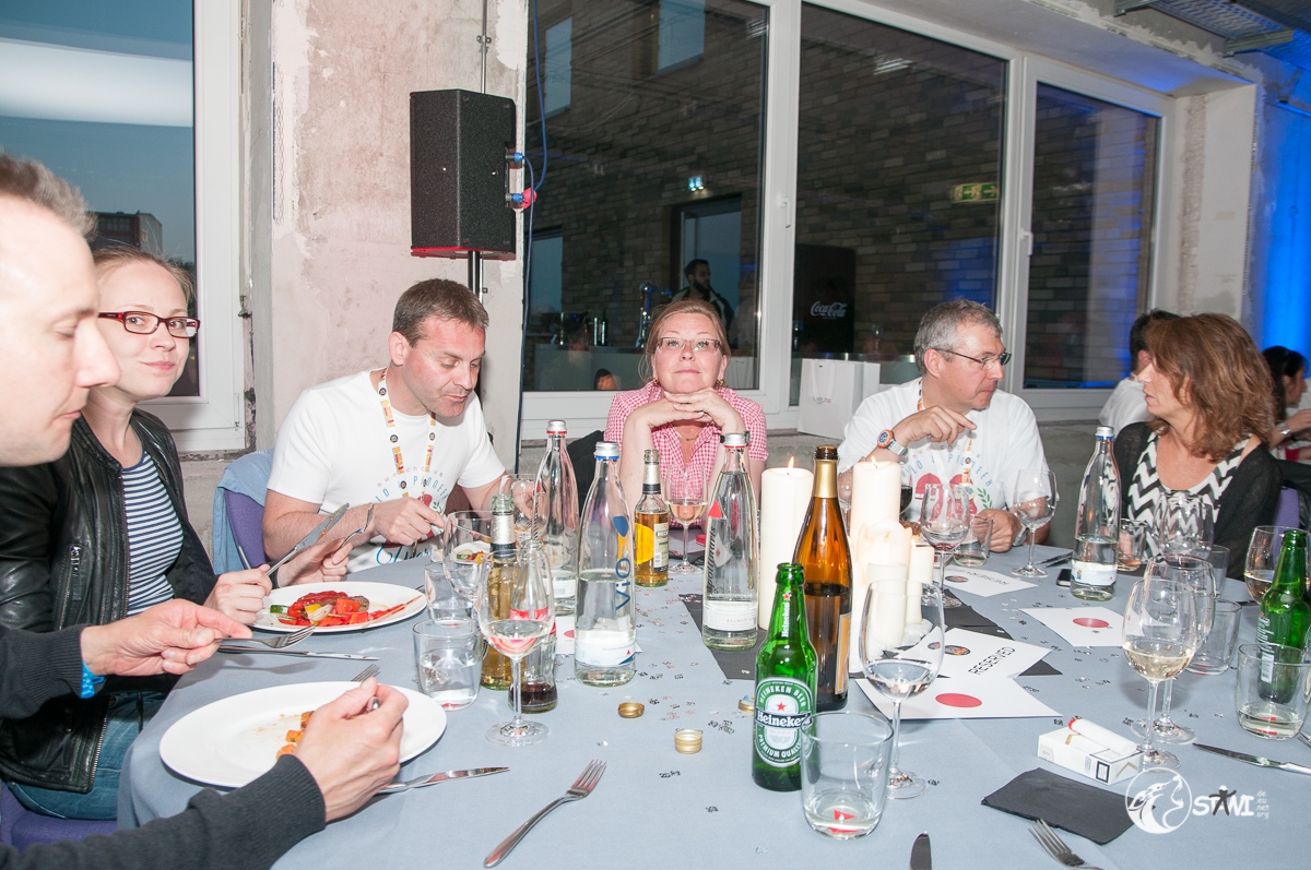 Das Abendprogramm startete mit einem Gruppenbild und einen Barbecue im Hotel. Während alle am Essen waren, bearbeitetet zwei junge Männer drei Maxi Swatch. Matthias Heyde aus Dresden designte eine Maxi und Bastian Wienecke designte zwei Maxis.