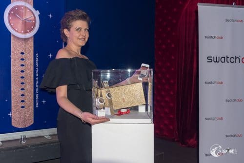 Doch der Event war noch von einem Höhepunkt entfernt. Die Vorstellung der diesjährigen Swatch Club Event Uhr, Zolotaja Moja Moskva (PNZ700S, “My Gold Moscow“), eine Pop-Swatch.