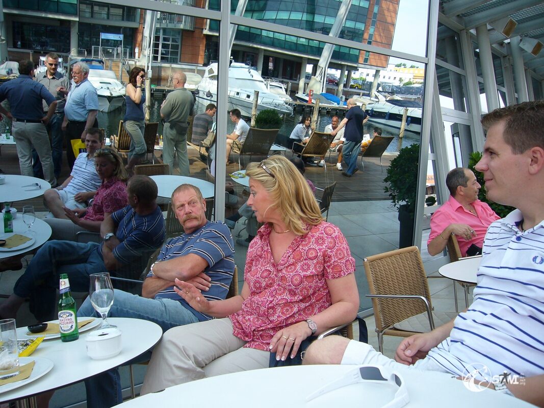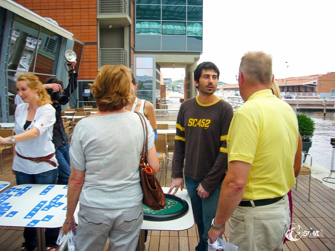 Im Hafen bzw. auf der Terrasse des Hotels genossen wir den angenehmen Nachmittag mit leichtem Wind und begrüßten die angereisten Swatch The Club Member. Insgesamt 134 Clubmember aus 17 Ländern nehmen am diesjährigen Gold & Pioneer Event teil.