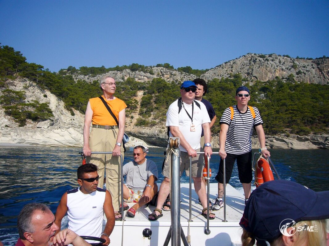 Um kurz vor elf stachen wir in See. Zu Beginn steuerten wir eine Bucht an, in der wir vom Schiff aus ins Meer springen konnten. Ein klasse Gefühl, wenn man in die angenehm warmen Fluten springt. Viele nutzen die Gelegenheit um ein wenig zu schwimmen.