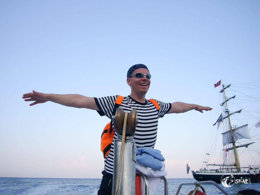 Absprung vom Bug aus.