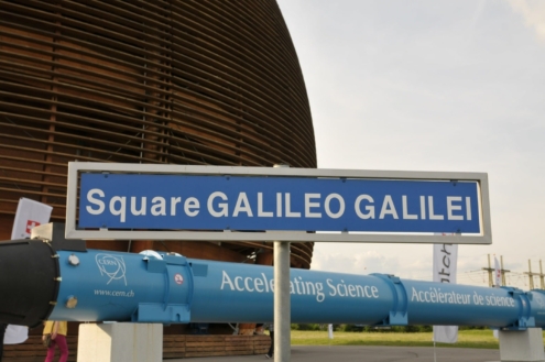 Genauer gesagt, war der CERN Globe Ziel unserer Fahrt. Der CERN Globe ist eine Konstruktion aus Holz mit 27m hoch und hat einen Durchmesser von 40m. Erster Stopp, das Erdgeschoss mit einer sensationellen Ausstellung zum Urknall und einigen technischen Errungenschaften, die heute unser Leben prägen. Nach einer Einführung ging es in die obere Etage, die sonst für Besucher verschlossen bliebt.