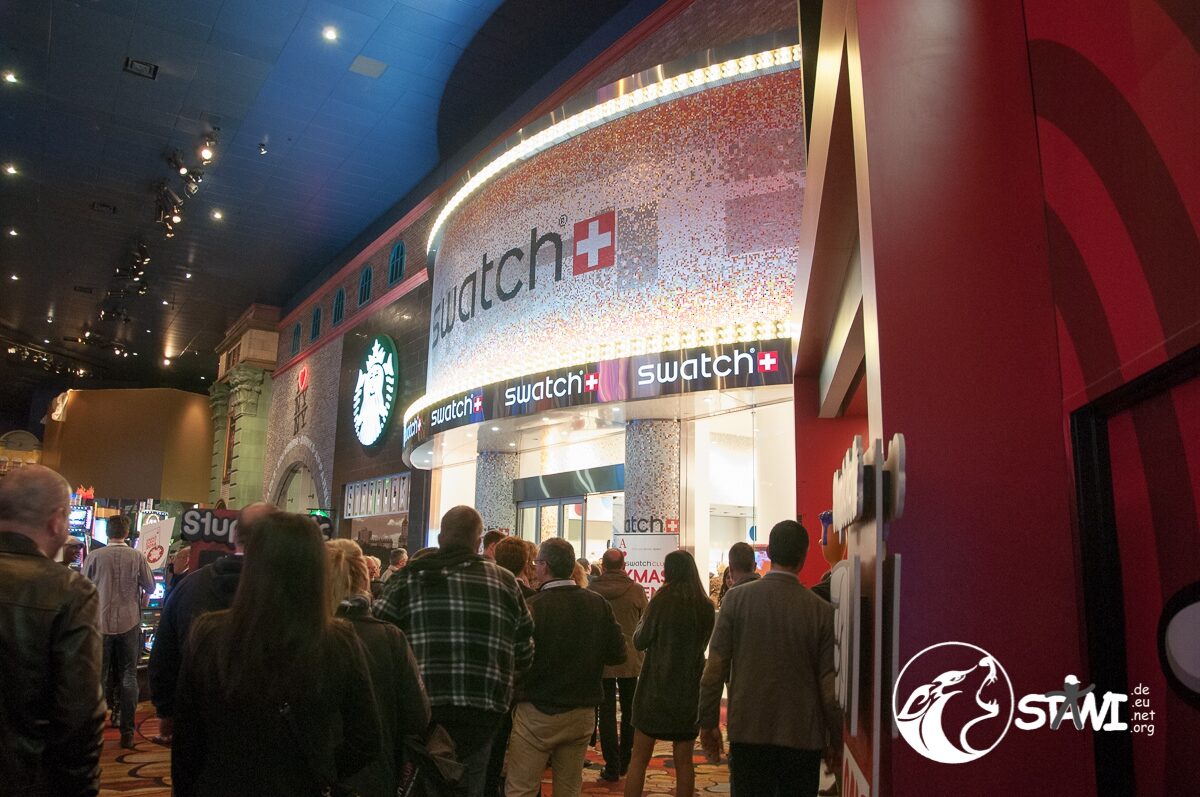 Mittwoch, 19.11.2014 zwischen 14:00 und 17:00 Uhr trafen sich 111 Swatch Club Member in der Monkey Bar im SLS. Ein großes internationales Hallo machte die Runde. Unter anderem waren Club Member aus Australien, USA, Asien und vielen Ländern Europas anzutreffen. Nach dem entspannten Come together ging es mit drei Bussen zum Hotel und Casino New York New York, besser gesagt zum dortigen Swatch Store, der von außen sogar an den Store in der Stadt New York erinnert. Es gab weitere Willkommens Drinks und leichten finger food.