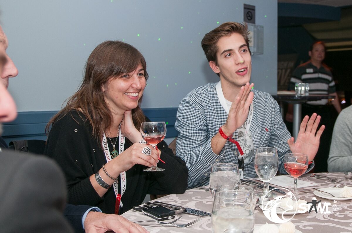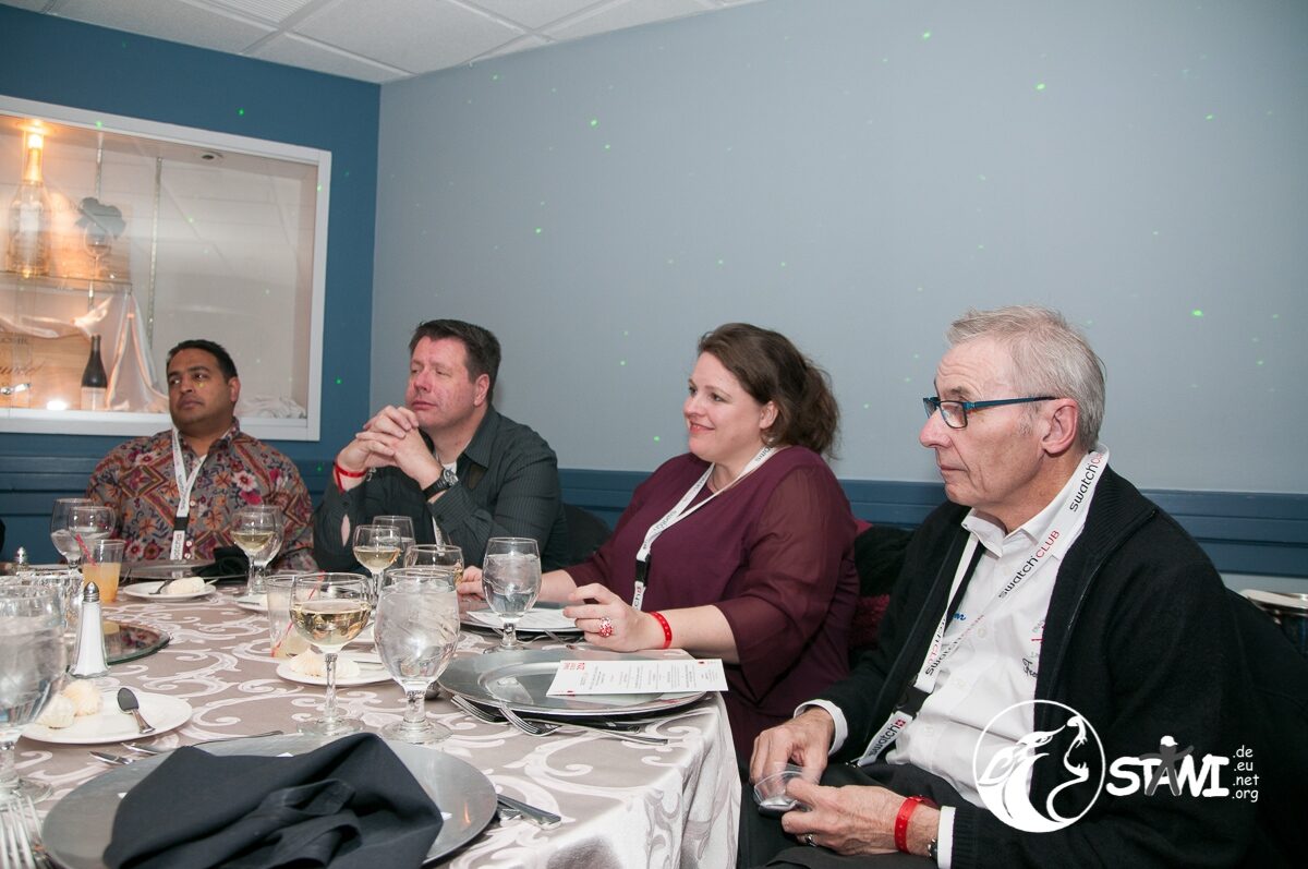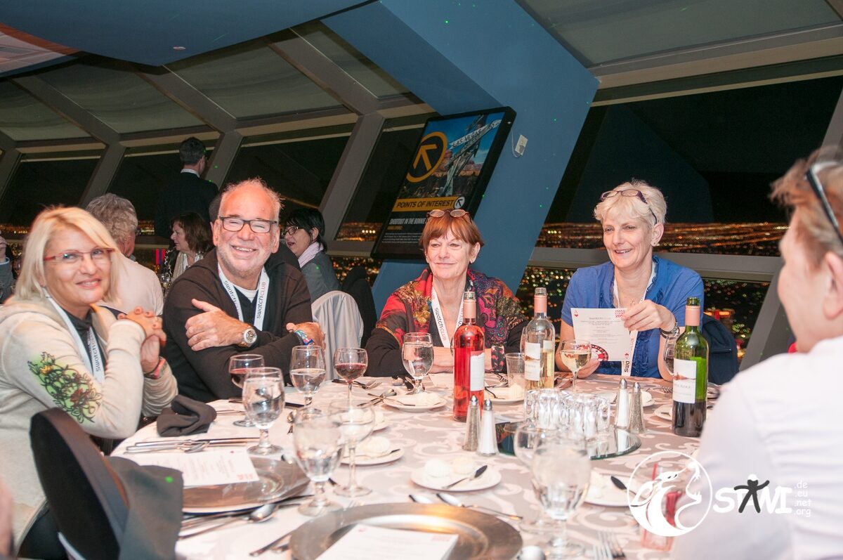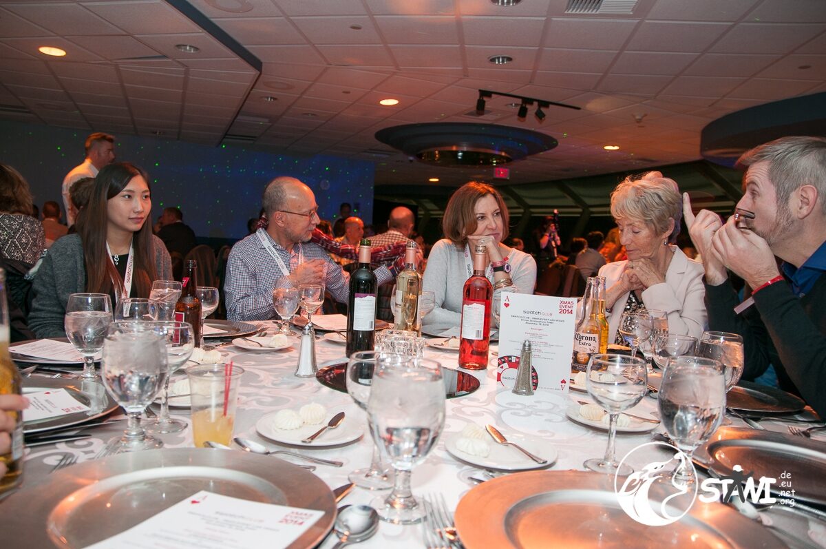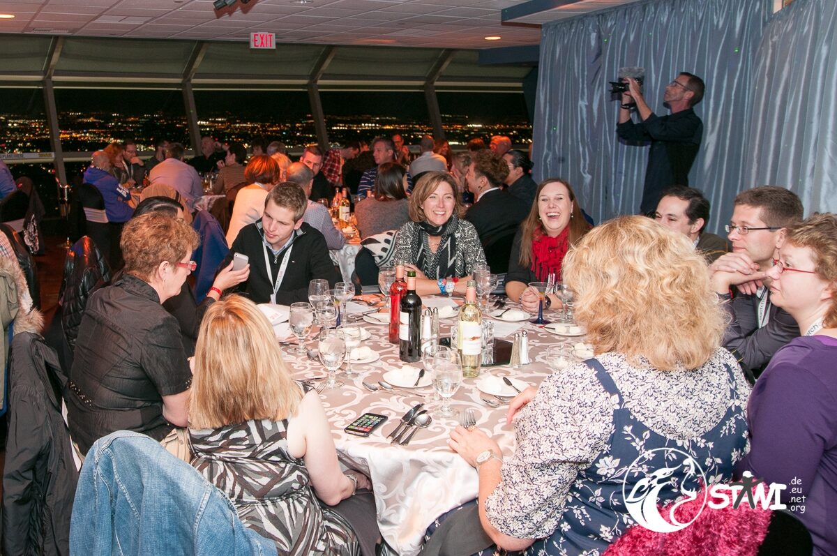 Dinner im Restaurant “Top of the world” auf einer Höhe von 800 feet, ca. 244 m hört sich erst einmal ganz entspannt an. War es auch, es sei denn, man probierte noch das eine oder andere Fahrgeschäft zwischen den Gängen aus. Jeder Swatch Member durfte Isanity, X-Scream und Big Shot ausprobieren, so oft er oder sie wollte. Und wer den Fahrgeschäften in fast 300 m Höhe nicht traute, der blieb im Restaurant und verfolgte fasziniert zwei Magiern bei Ihren Kartentricks.