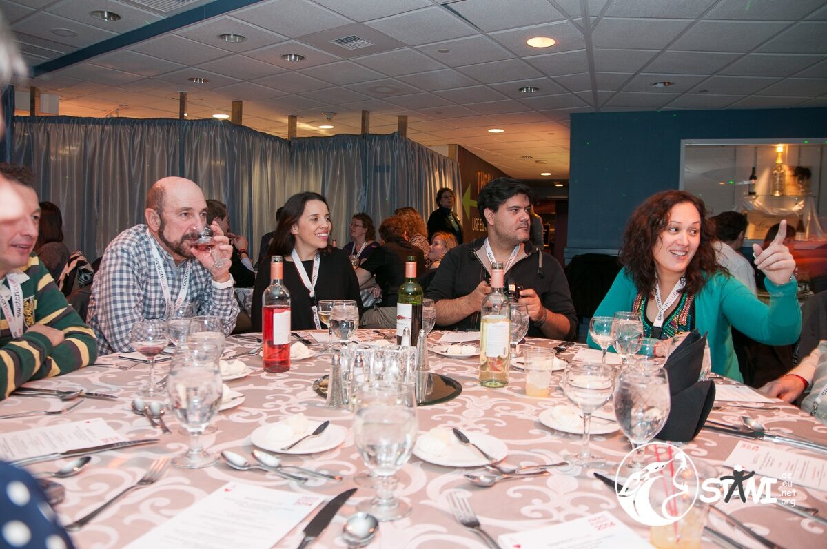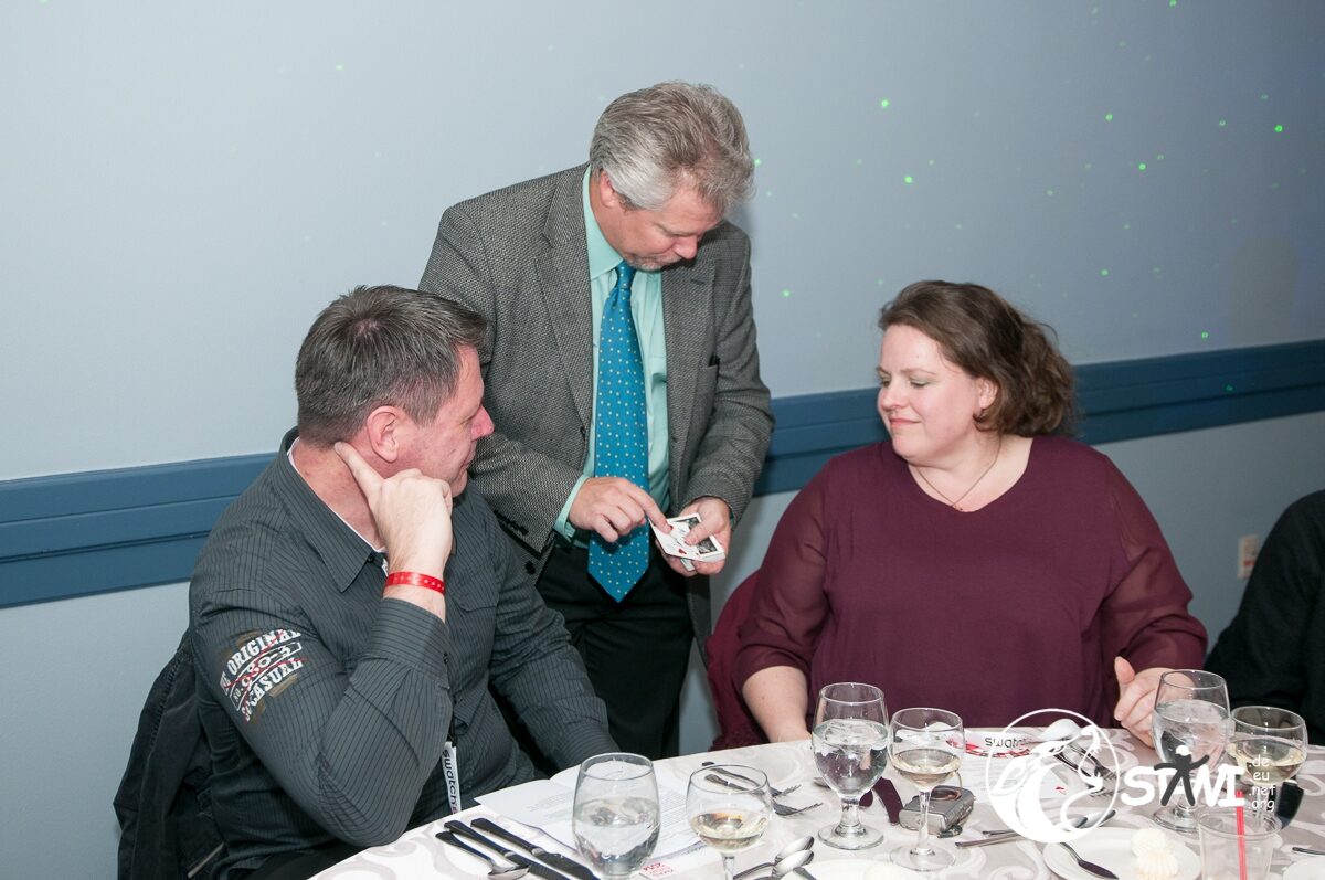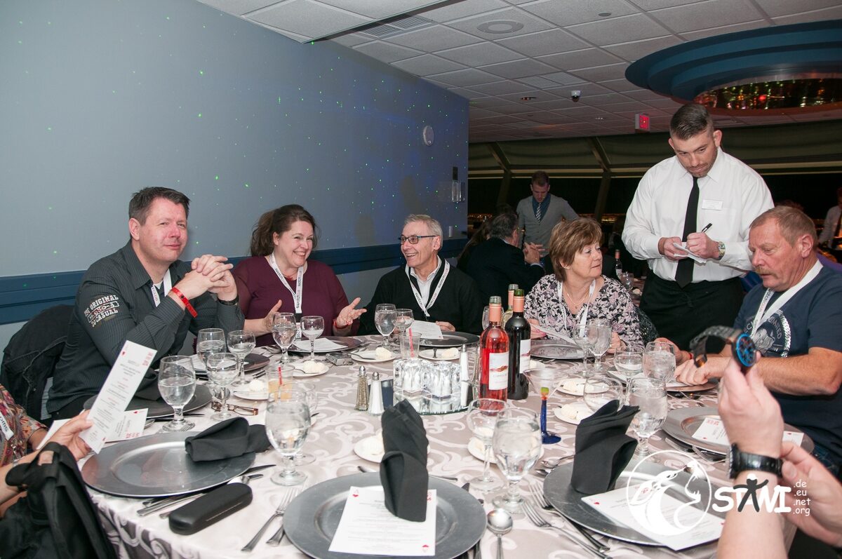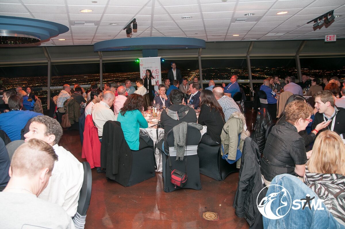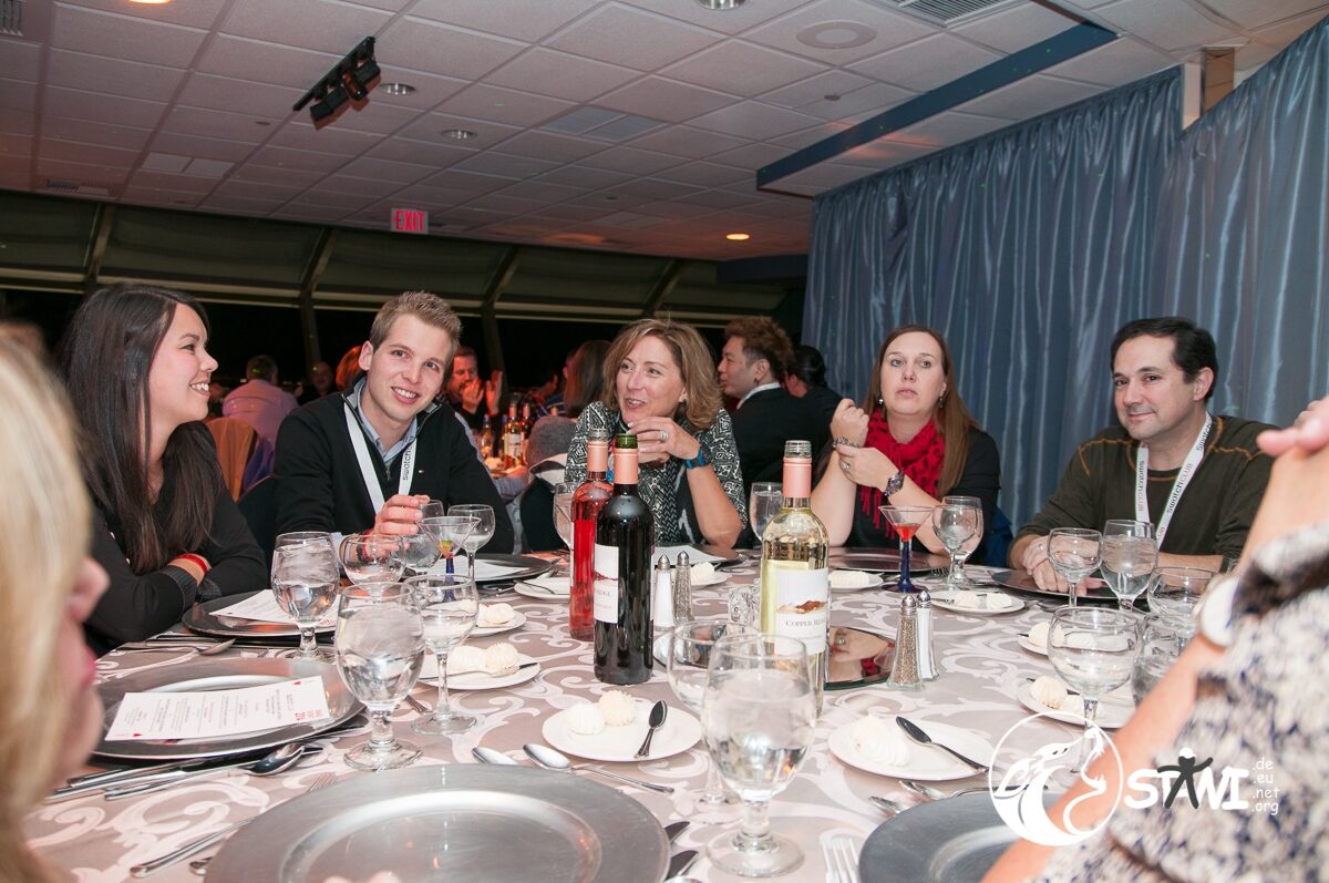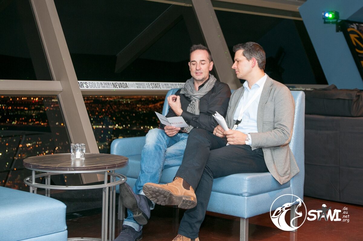 Dinner im Restaurant “Top of the world” auf einer Höhe von 800 feet, ca. 244 m hört sich erst einmal ganz entspannt an. War es auch, es sei denn, man probierte noch das eine oder andere Fahrgeschäft zwischen den Gängen aus. Jeder Swatch Member durfte Isanity, X-Scream und Big Shot ausprobieren, so oft er oder sie wollte. Und wer den Fahrgeschäften in fast 300 m Höhe nicht traute, der blieb im Restaurant und verfolgte fasziniert zwei Magiern bei Ihren Kartentricks.