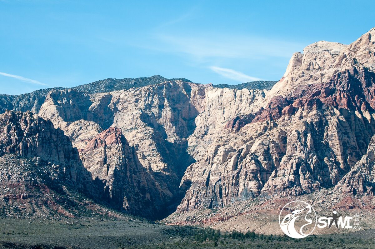 Der Red Rock Canyon liegt etwa 27 km westlich von Las Vegas, inmitten der Hochwüste Nevadas. Im Sommer ist es heir mit Sicherheit richtig heiß. Der Red Rock Canyon ist so um die 400 Millionen Jahre alt und geht aus einem alten Meeresbett hervor. Seit 1990 ist das gesamte Gebiet ein Naturschutzgebiet.
