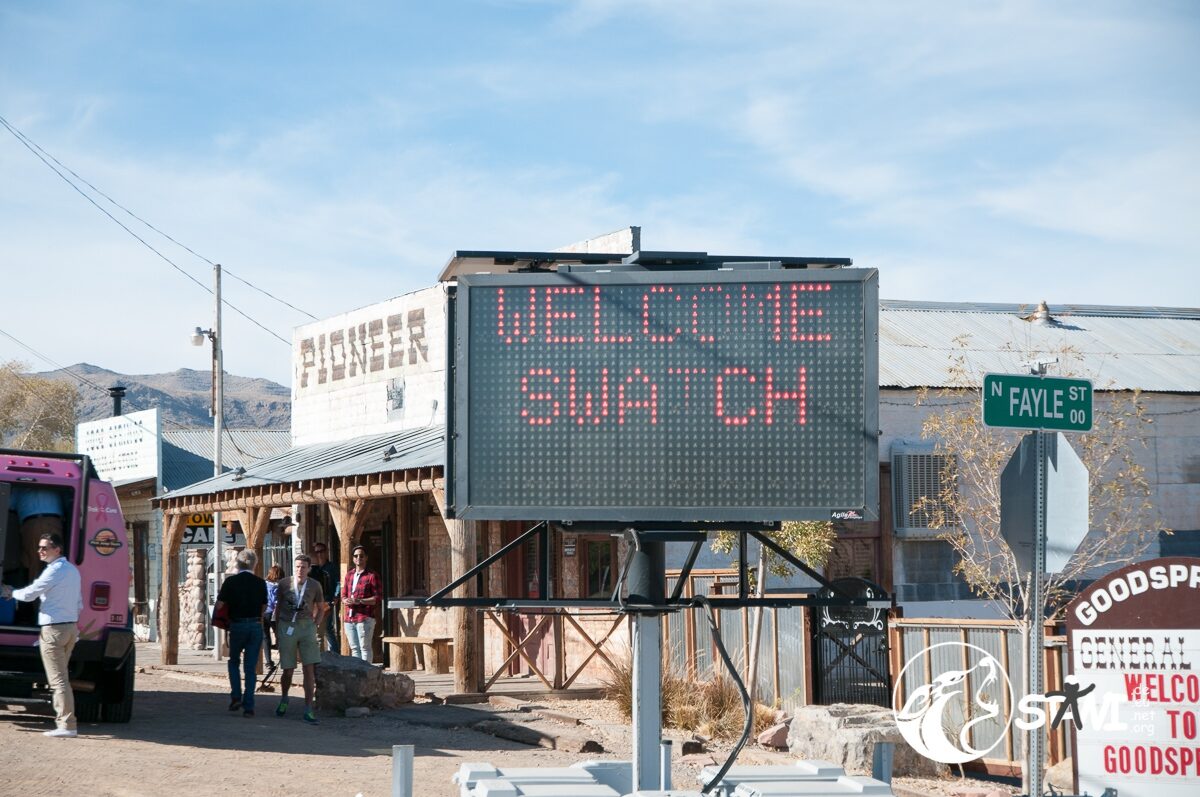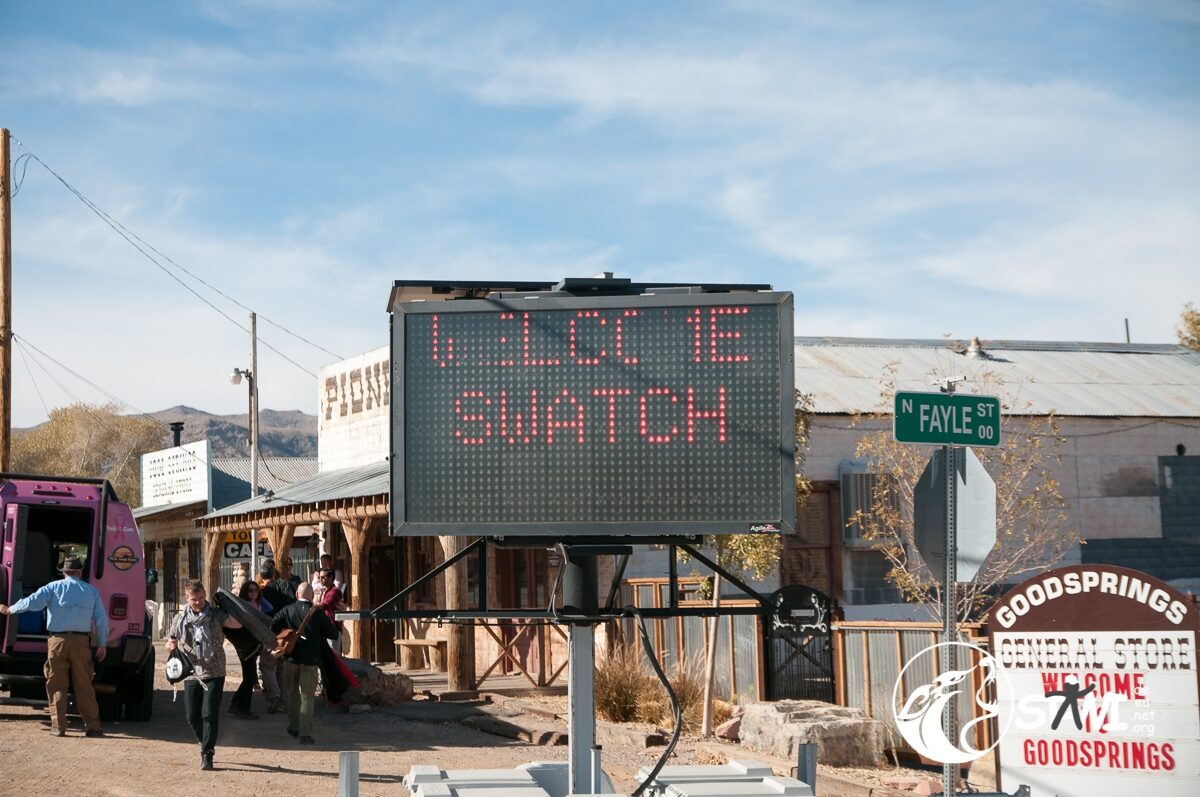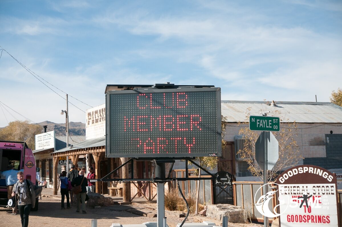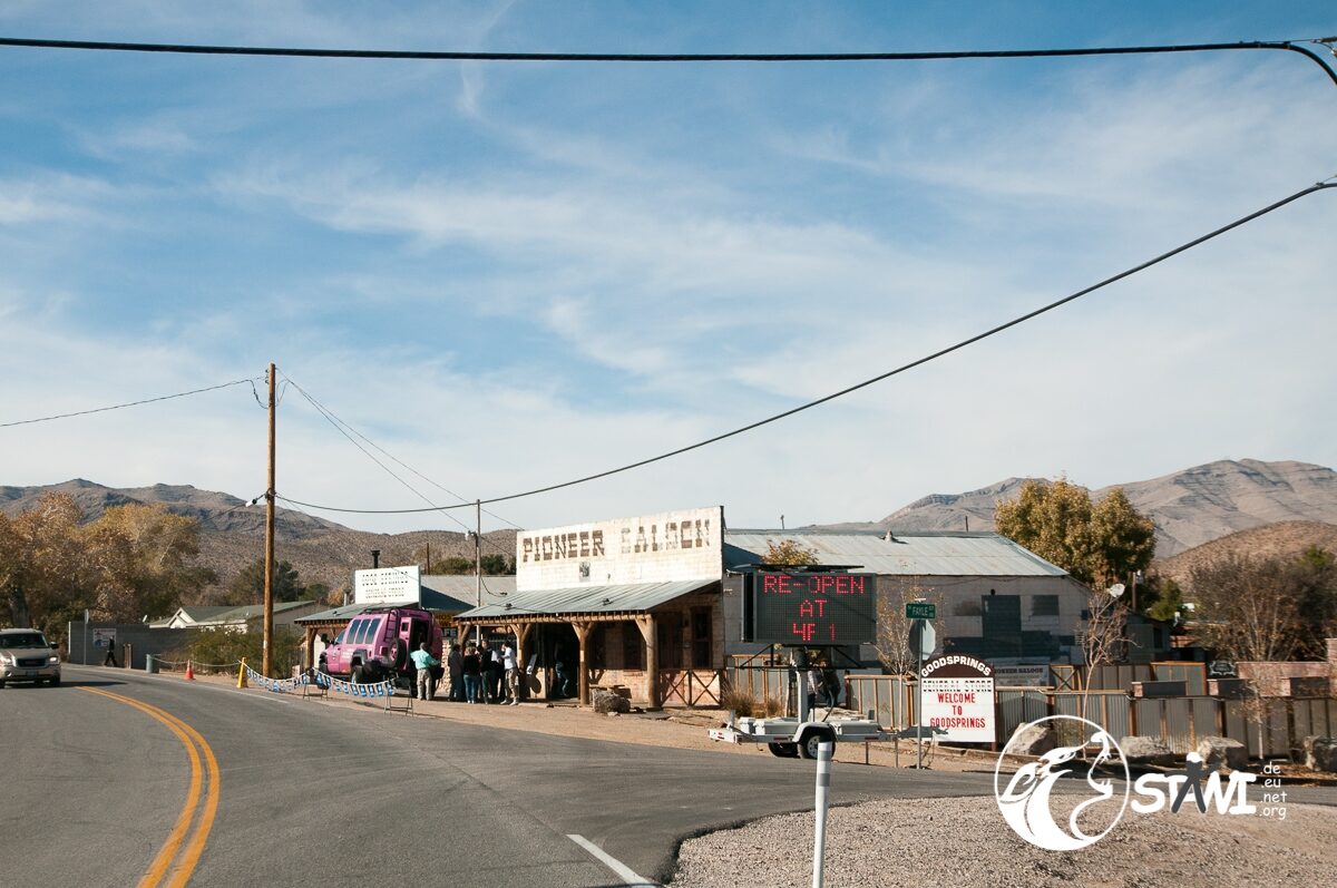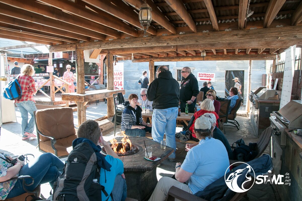 Gegen 13:00 Uhr kamen wir dann am Pioneer Saloon in Goodsprings, NV an. Country Music, coole Drinks und eine chillige Stimmung empfingen uns. Barbecue zum Mittagessen. Klasse Idee. Und überall von man hinschaute, war das Branding Swatch zu erkennen. Immer wieder gab es das Swatch Logo zusehen. Jeder Mensch der sich um uns kümmerte, Guide, Service-Kraft etc. trug eine Swatch Uhr am Arm. Vor lauter Swatch sah man Swatch fast nicht mehr.