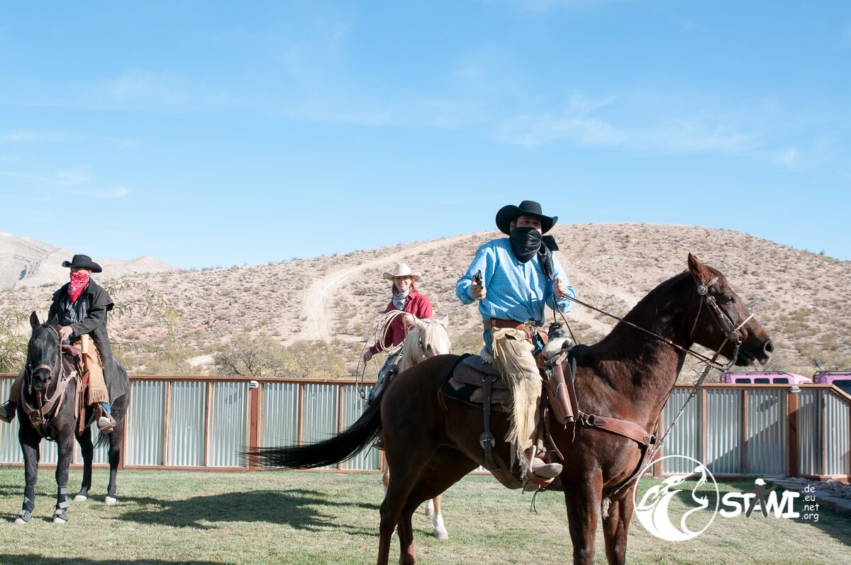 Die Mittagsruhe wurde je unterbrochen, als schießwütige Cowboys mit ihren Pferden auftauchten und nach GIUSY verlangten. Ehe wir uns versahen, war Giusy entführt und verschleppt. Um sie wieder zu befreien, mussten die wild gebildeten Teams aus Swatch Member, diverse Aufgaben erfüllen und Fragen zum Saloon beantworten.