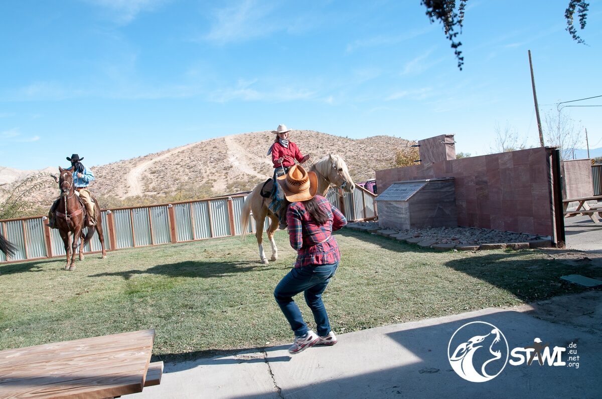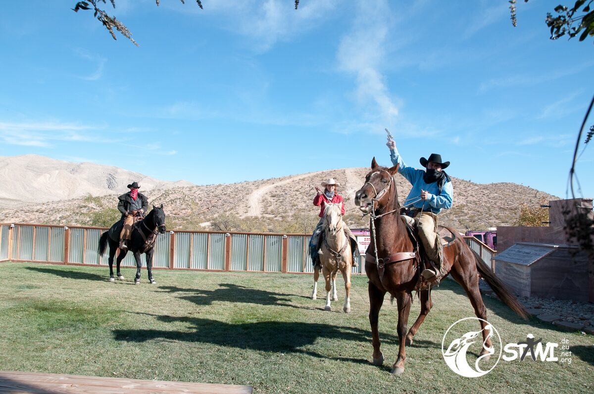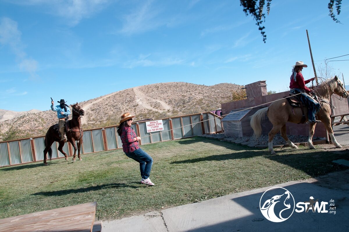 Recht schnell hatte das erste Team die Aufgaben gelöst und Giusy konnte wieder befreit werden. Gegen 16:00 Uhr stürmten dann alle 111 Club Member aus dem Saloon um nach einem Gruppenfoto mit drei Bussen zurück nach Las Vegas zu fahren.