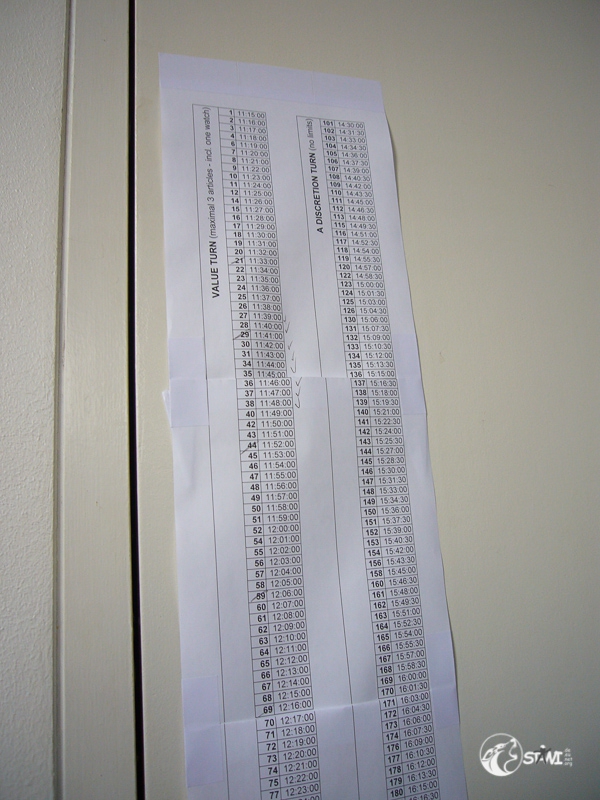 Nach dem Mittagessen in der Dampfzentrale durften wir erneut Nummern ziehen. Diesmal war Einkaufen ohne Limit angesagt. Es gab nicht nur Specials und alte Uhren, sondern Banner, Plakate, Schlüsselbändern und vieles mehr, was einen Swatch Fan das Herz höher schlagen lässt. Logistisch von Swatch bestens vorbereitet, wurde es nun für unseren weit angereisten Clubmitglieder spannend. Kurz bevor es zurück zum Hotel ging, gab es eine Verlosung von einigen einmaligen Artikel. Darunter auch zwei Glocken, die von Swatch Clubbies produziert wurden.