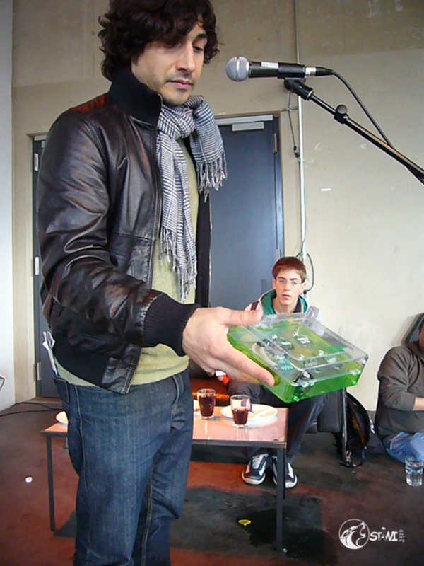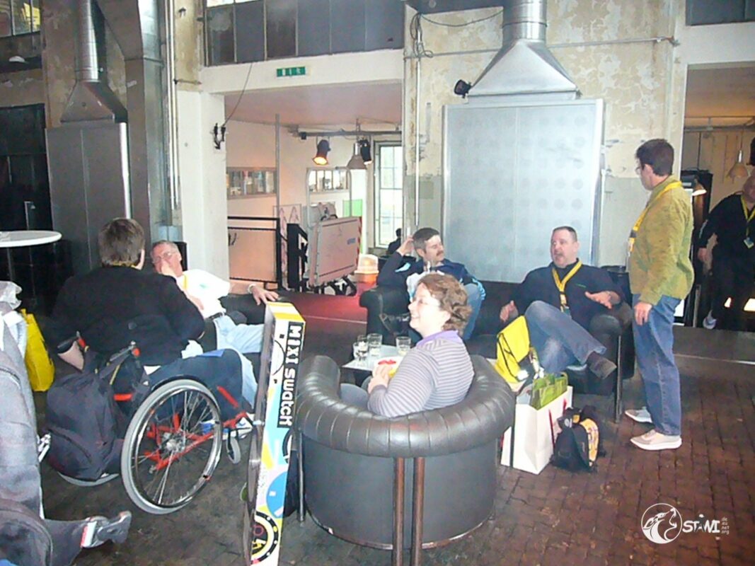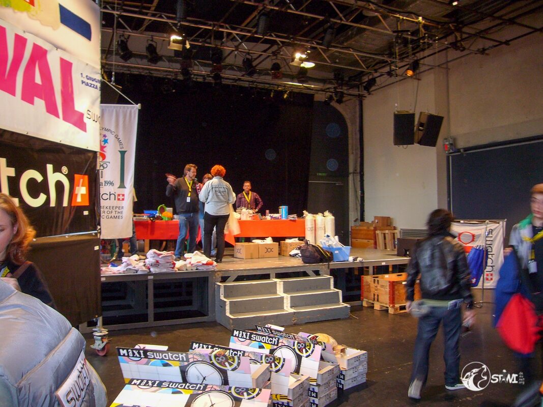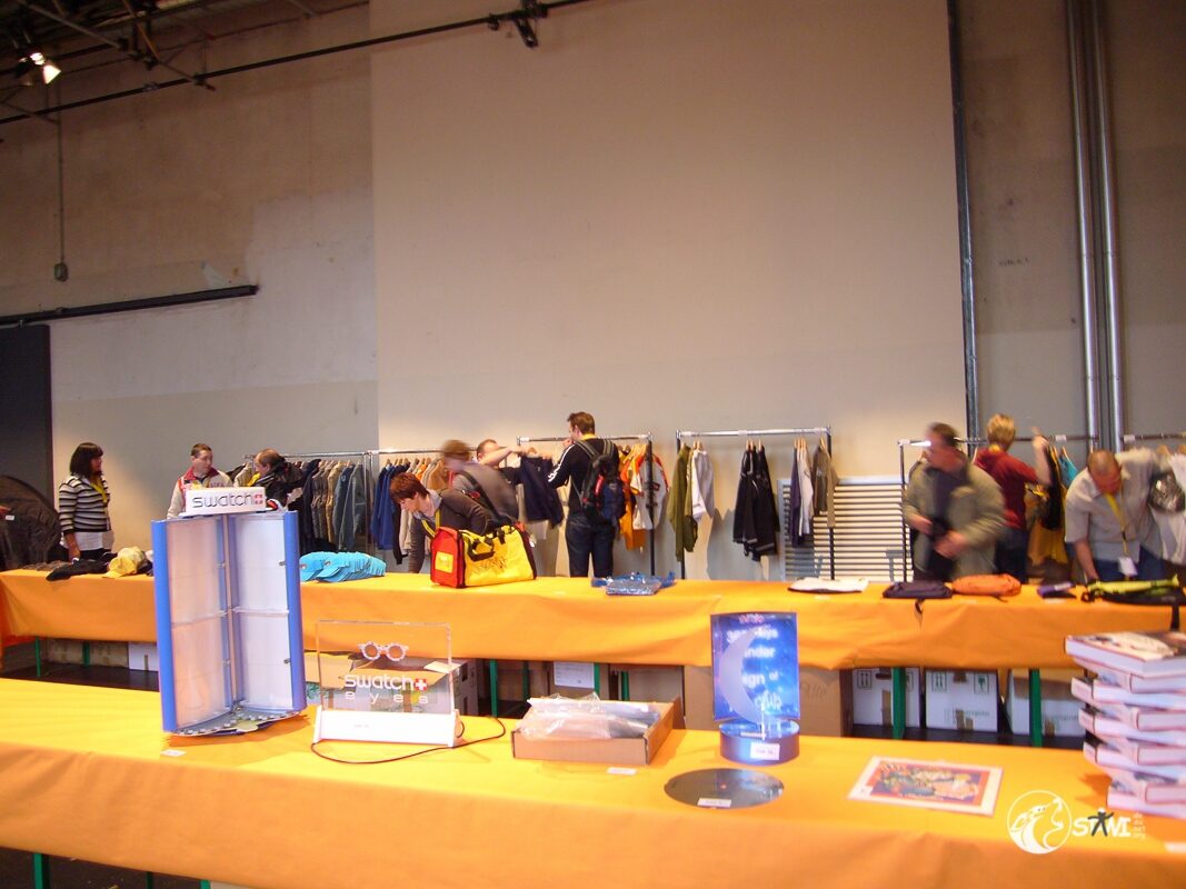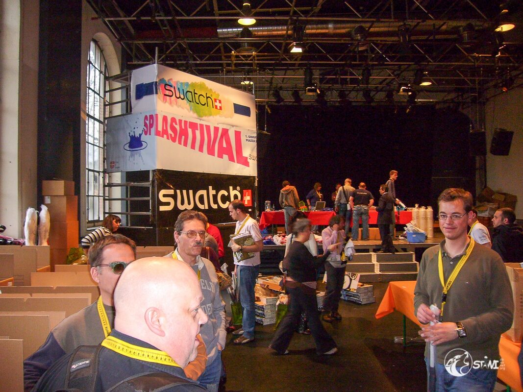Nach einem gemütlichen Frühstück ging es mit dem Bus zur Dampfzentrale Bern. Dort hatte das Team von Swatch und Swatch The Club einiges vorbereitet. Nach der Begrüssung erfolgte für alle ganz Unerwartet die Vorstellung der Swatch The Club Uhr 2008. Auch wenn der 25. Geburtstag von Swatch nicht gebührend gefeiert wurde, so ist das diesjährige Swatch Special genau das Richtige. Anschließend durften alle Member eine Nummer ziehen. Bis zum Mittagessen durfte jeder durch eine große Halle mit allerlei Swatch Artikel laufen und sich zu Beginn drei Stück aussuchen. Diese wurden dann erst einmal in eine Umzugskiste gepackt.