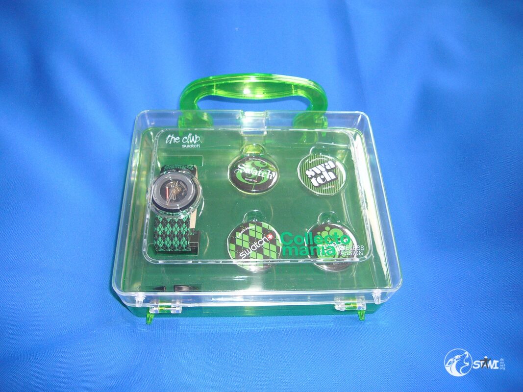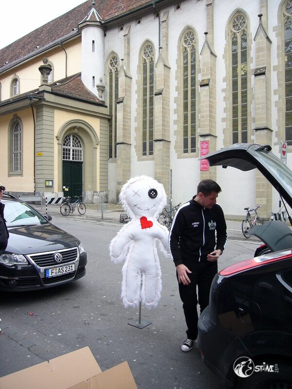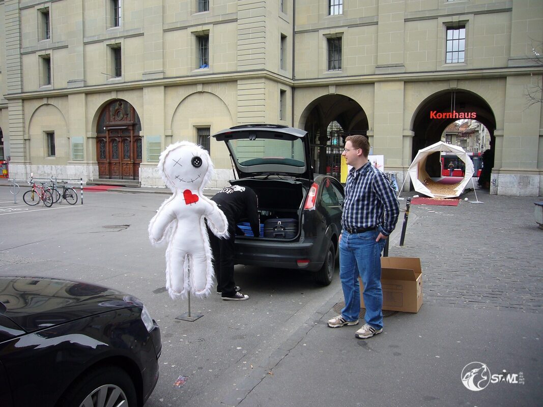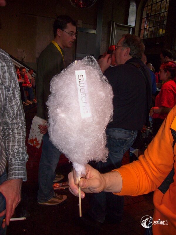 Nach einem gemütlichen Frühstück ging es mit dem Bus zur Dampfzentrale Bern. Dort hatte das Team von Swatch und Swatch The Club einiges vorbereitet. Nach der Begrüssung erfolgte für alle ganz Unerwartet die Vorstellung der Swatch The Club Uhr 2008. Auch wenn der 25. Geburtstag von Swatch nicht gebührend gefeiert wurde, so ist das diesjährige Swatch Special genau das Richtige. Anschließend durften alle Member eine Nummer ziehen. Bis zum Mittagessen durfte jeder durch eine große Halle mit allerlei Swatch Artikel laufen und sich zu Beginn drei Stück aussuchen. Diese wurden dann erst einmal in eine Umzugskiste gepackt.
