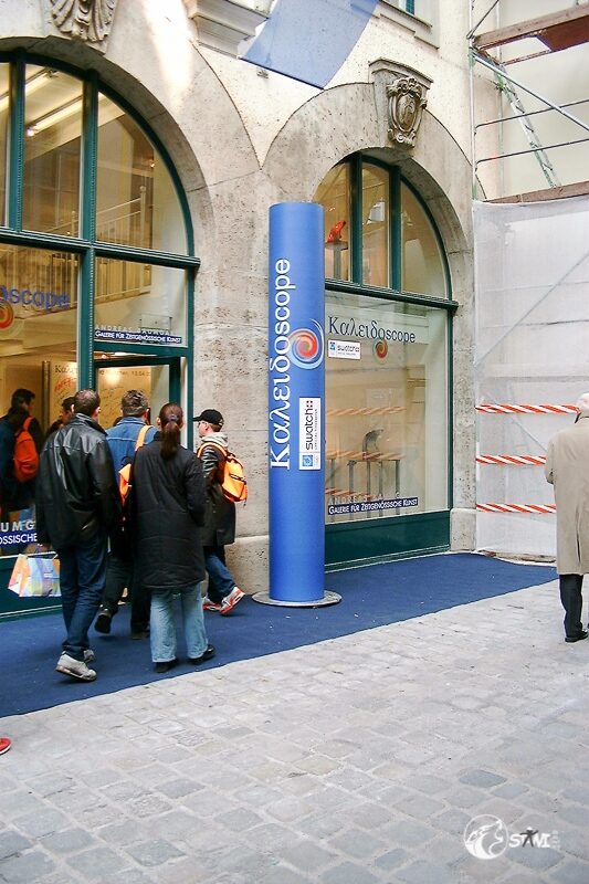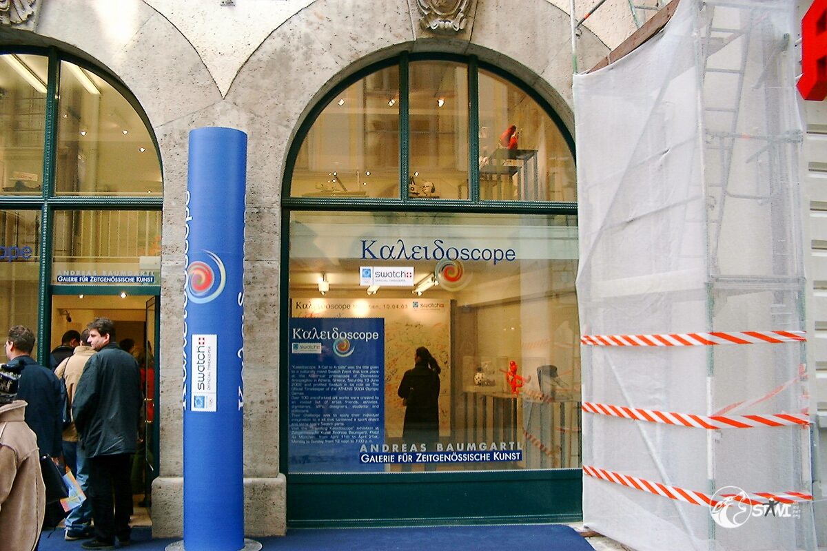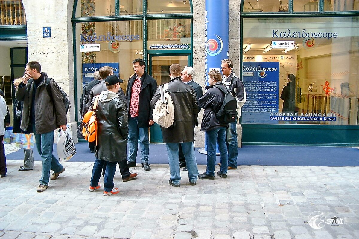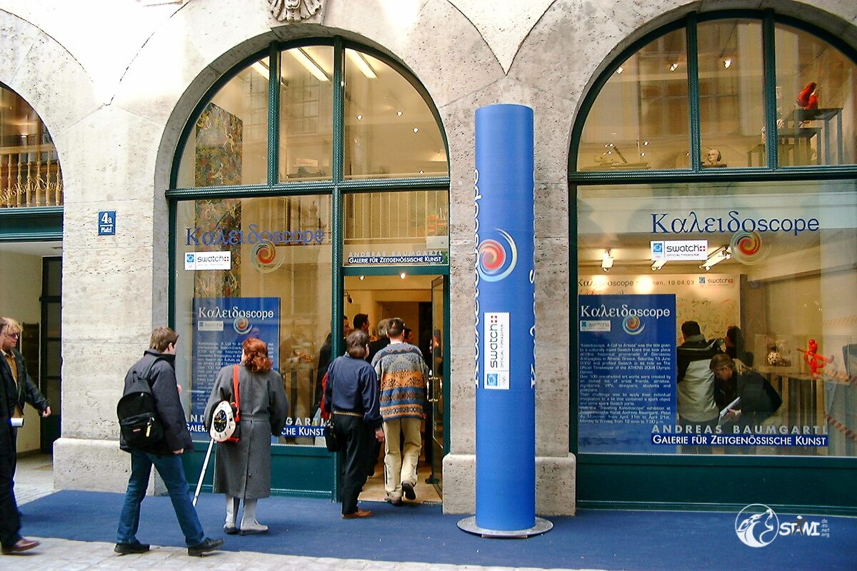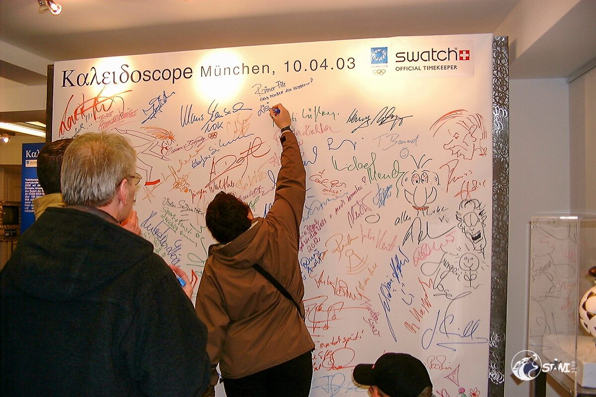 Nach der Autogrammstunde führte uns Semra zur “Galerie für Zeitgenössische Kunst” von Andreas Baumgartl (Platzl 4a in München) in der die Ausstellung “Swatch Kaleidoskope” einmalig in Deutschland zu bewundern war. Als Highlight durften wir Clubmitglieder uns auf der Promileinwand verewigen.