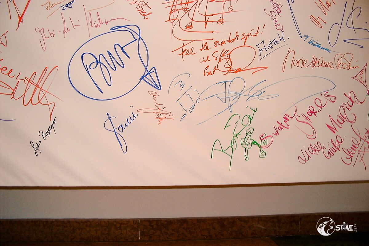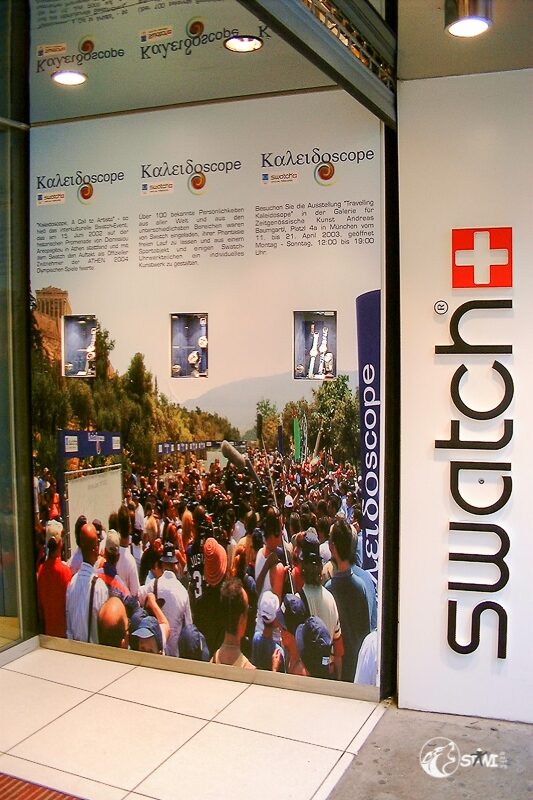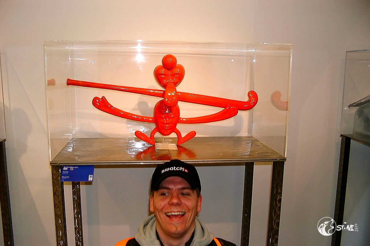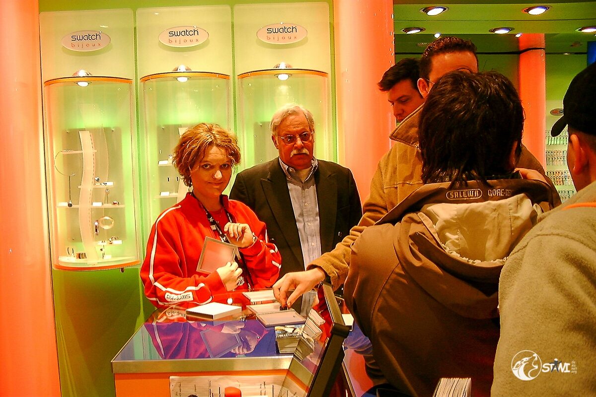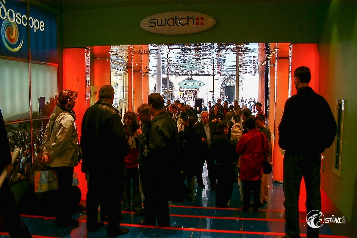 Nach der Autogrammstunde führte uns Semra zur “Galerie für Zeitgenössische Kunst” von Andreas Baumgartl (Platzl 4a in München) in der die Ausstellung “Swatch Kaleidoskope” einmalig in Deutschland zu bewundern war. Als Highlight durften wir Clubmitglieder uns auf der Promileinwand verewigen.