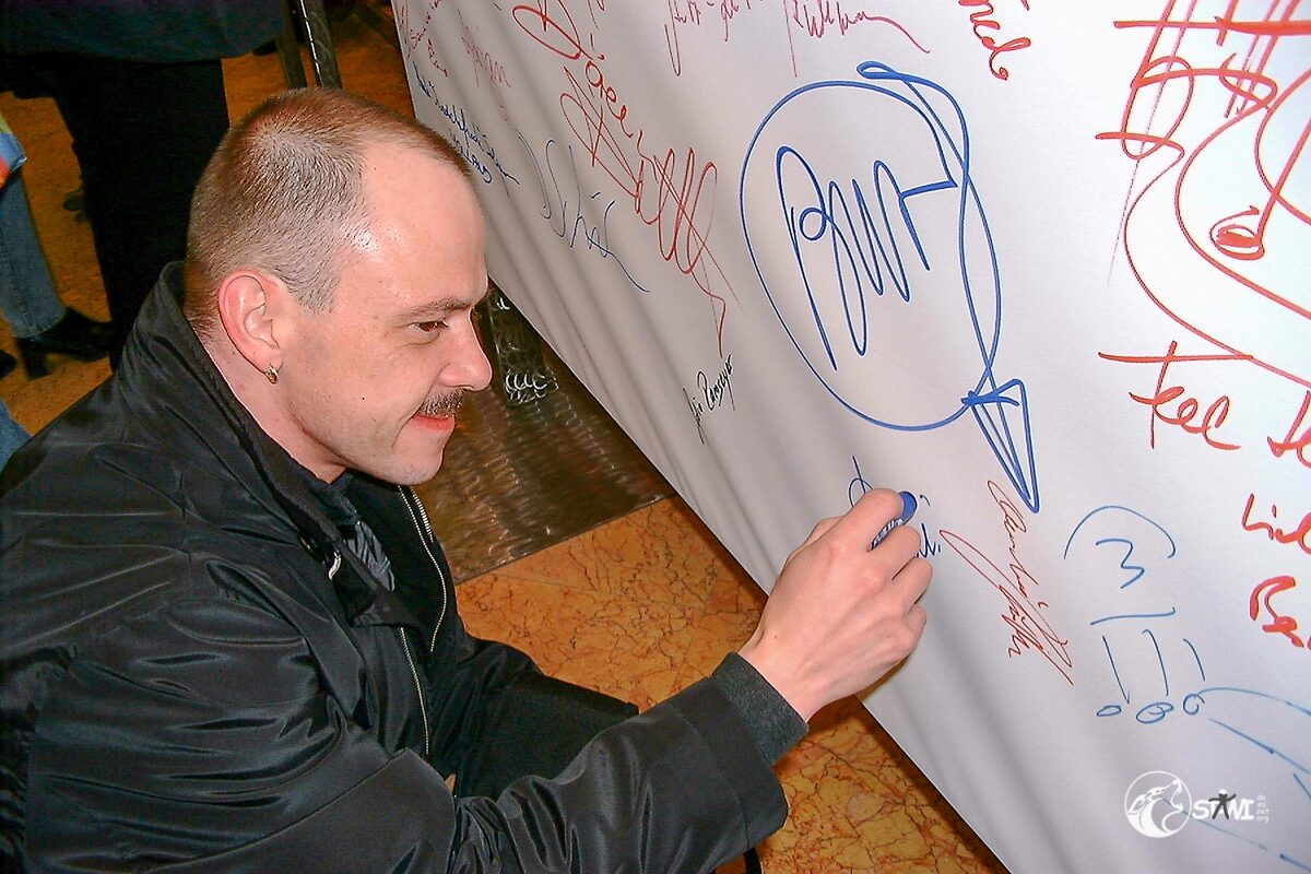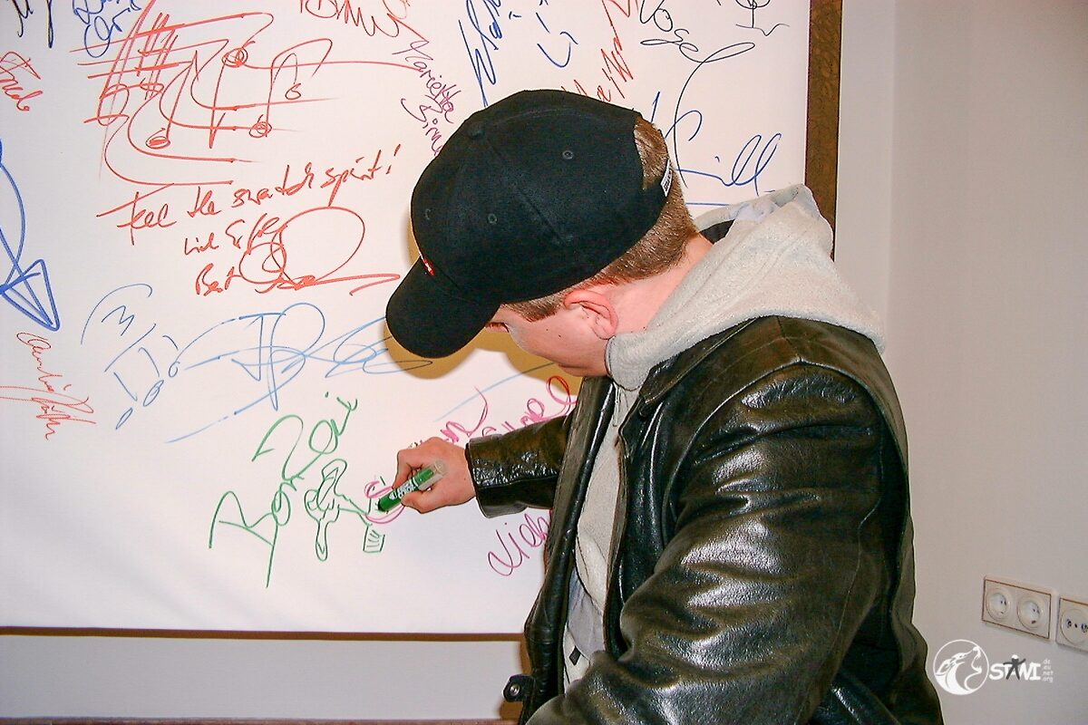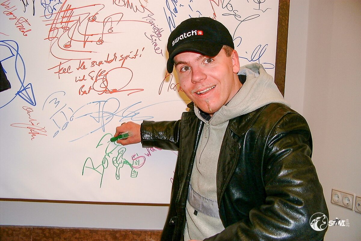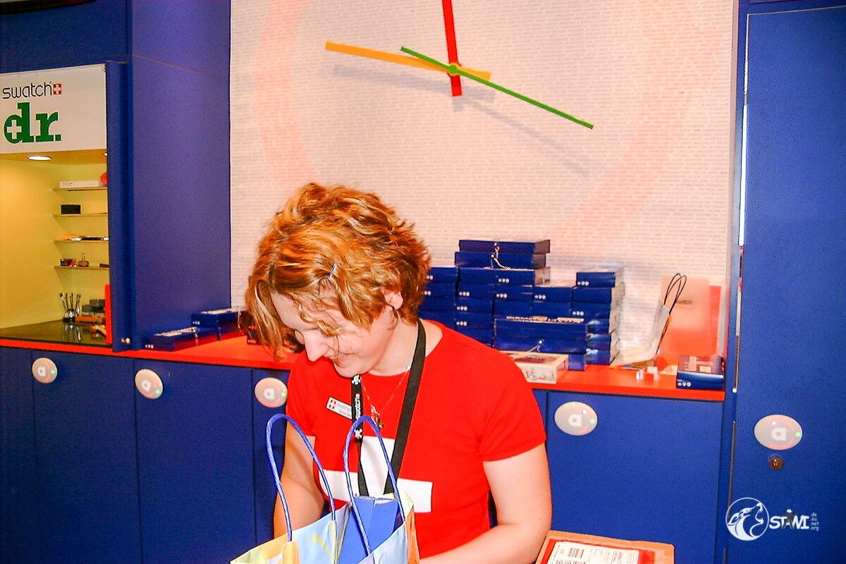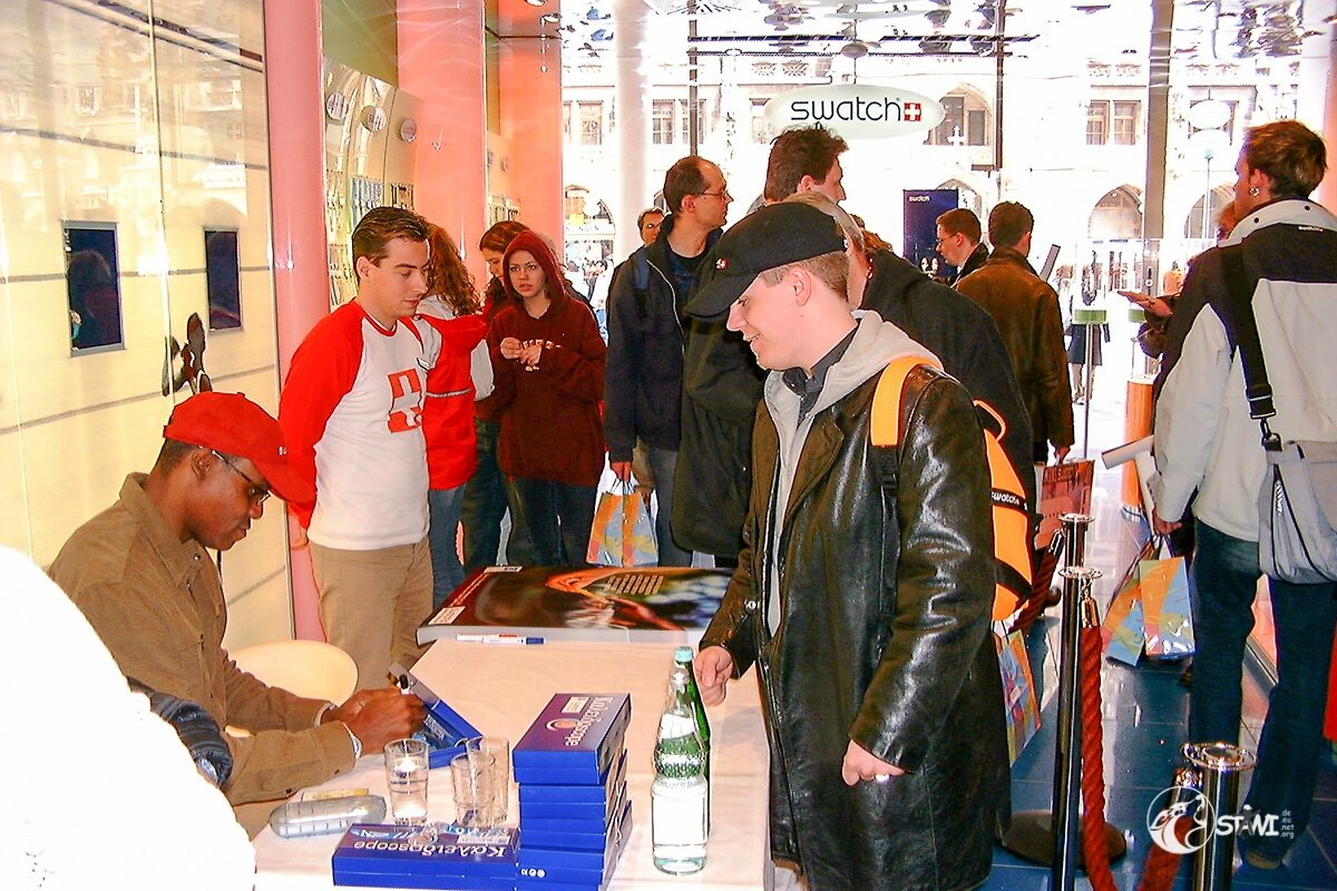Nach der Autogrammstunde führte uns Semra zur “Galerie für Zeitgenössische Kunst” von Andreas Baumgartl (Platzl 4a in München) in der die Ausstellung “Swatch Kaleidoskope” einmalig in Deutschland zu bewundern war. Als Highlight durften wir Clubmitglieder uns auf der Promileinwand verewigen.