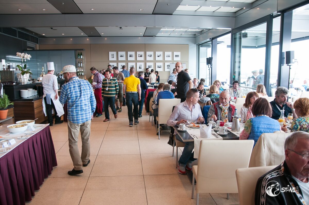 Und schon waren wir beim vierten Tag. Die ersten Clubmember reisten schon vor dem ersten Hahnenschrei ab. Alle anderen fuhren um 09:00 Uhr zum Brunch in den Reichstag. Besser gesagt auf den Reichstag, zum Restaurant Käfer.