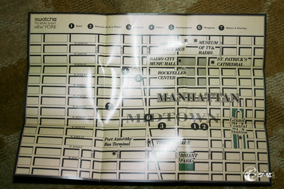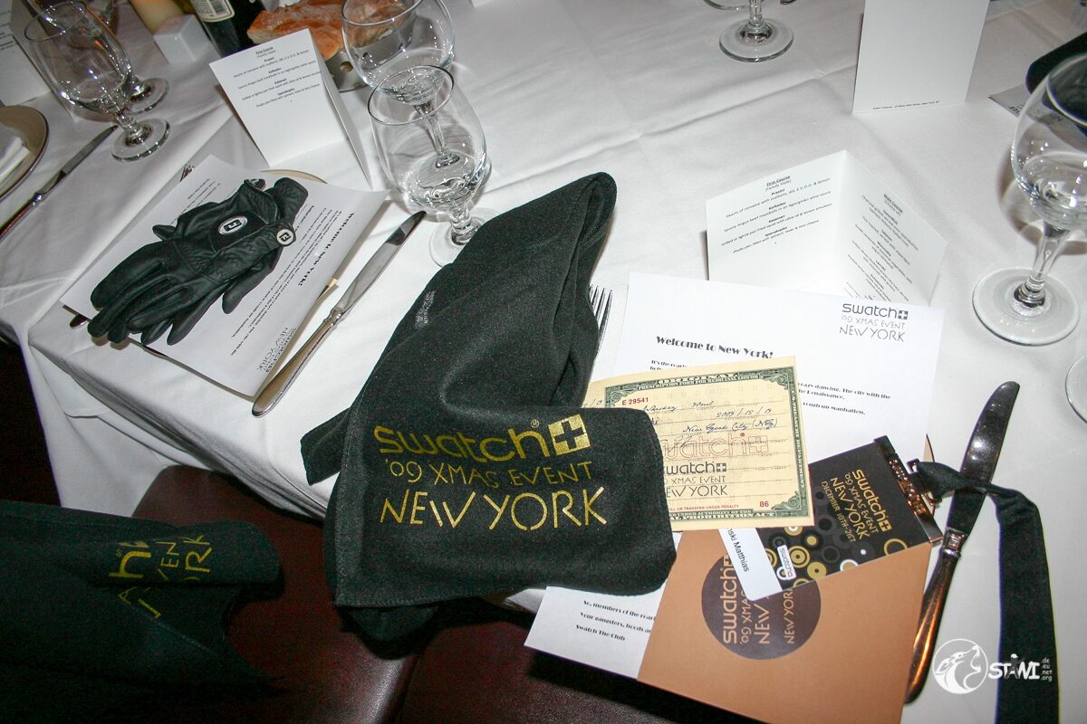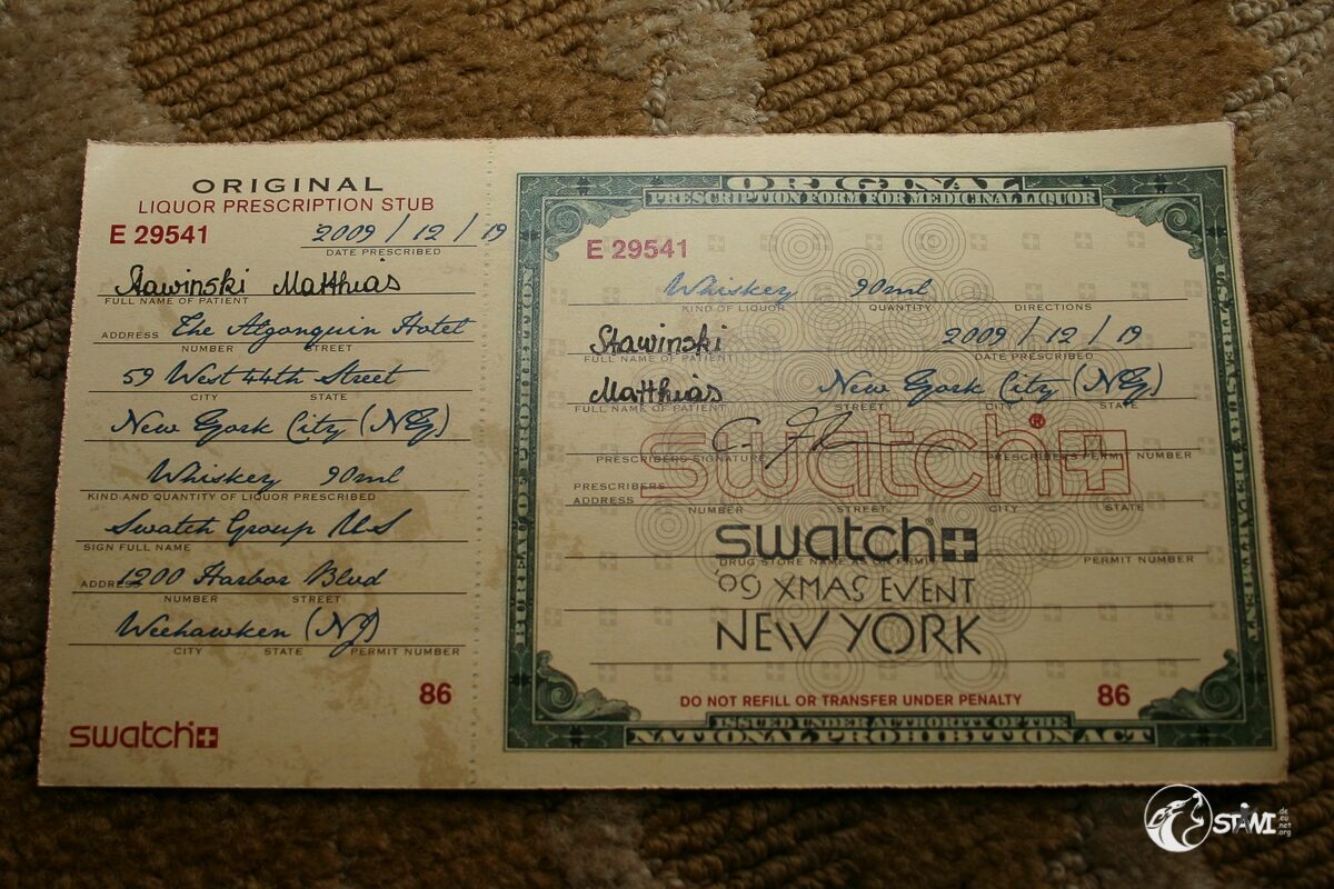 Das Treffen in der Loby vom Algonquin Hotel fiel recht kurz aus. Das Welcome Desk war in der Kellari Taverna aufgebaut. Zur Begrüßung gab es eine Ausschanklizenz für New York, einen Schal und das Programmm.