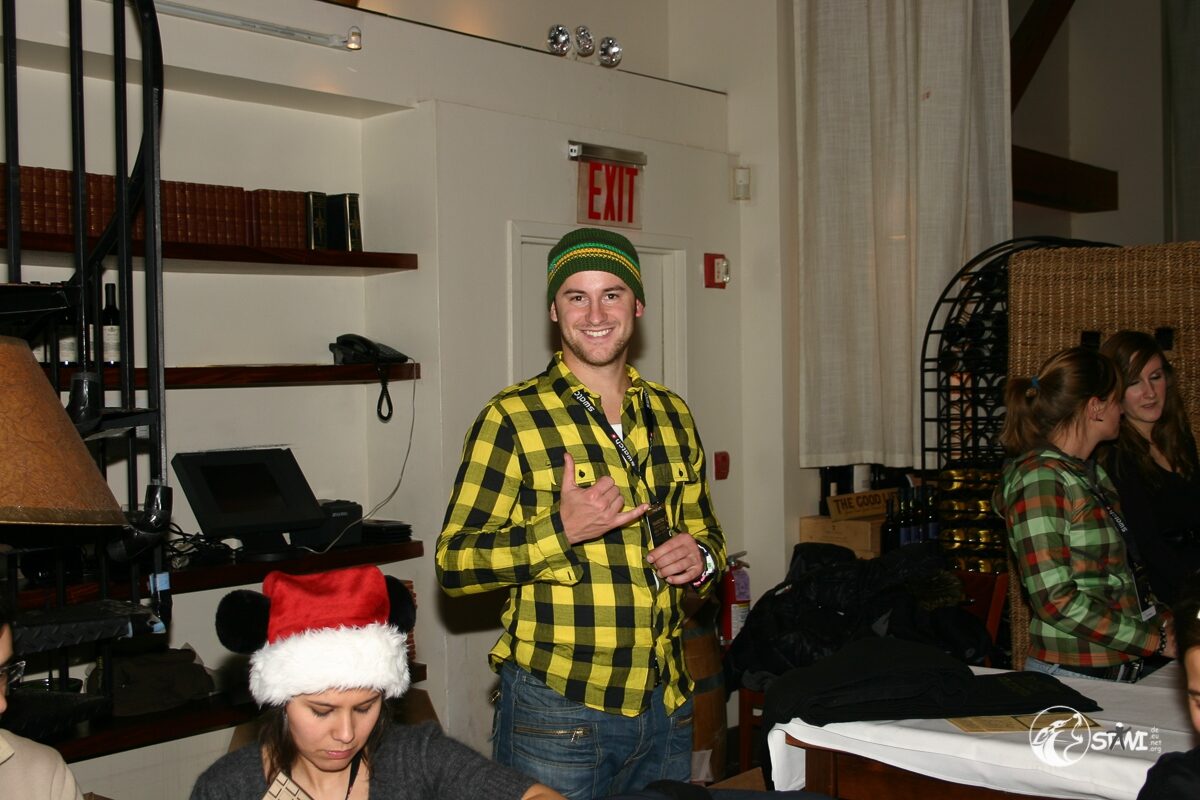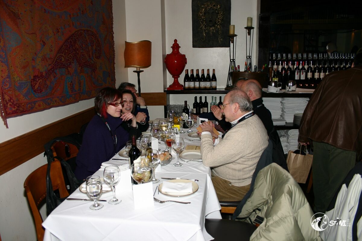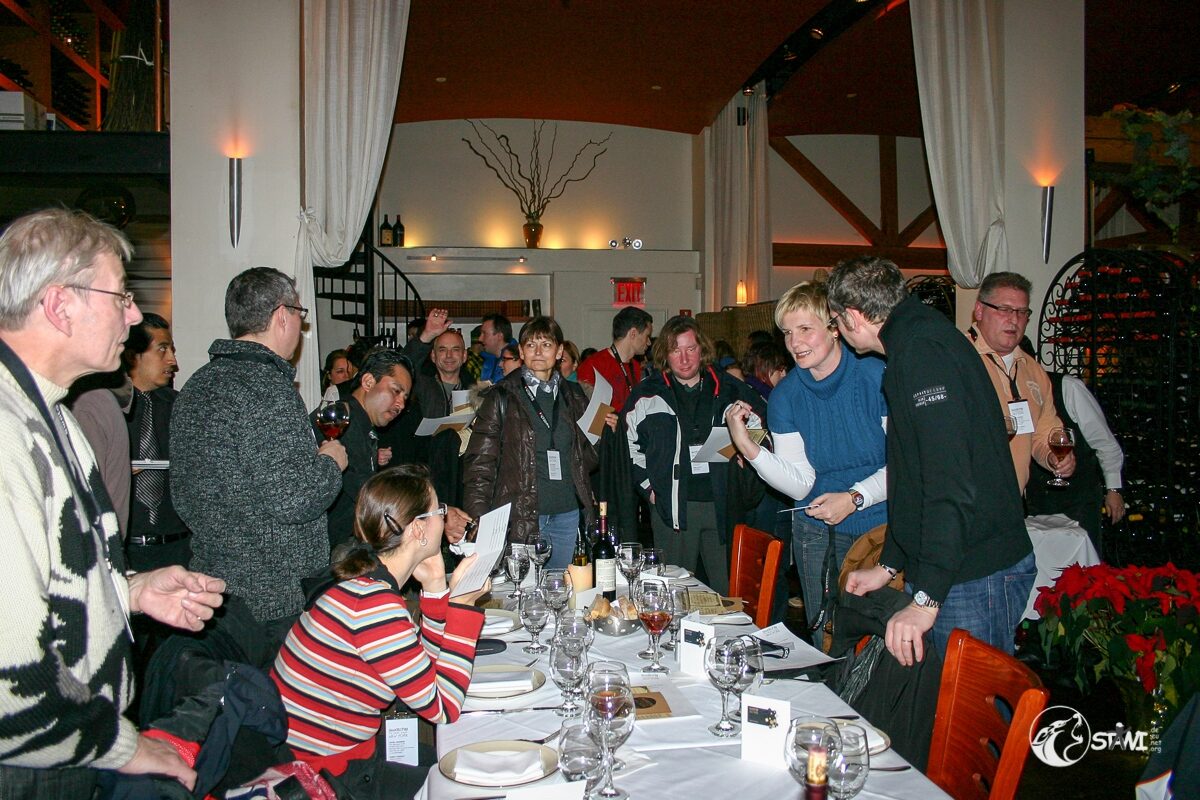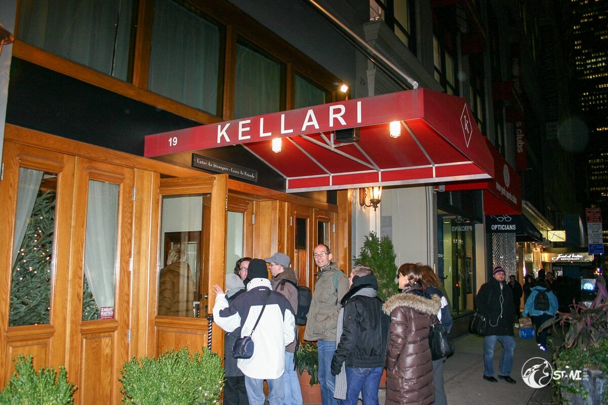 Das Treffen in der Loby vom Algonquin Hotel fiel recht kurz aus. Das Welcome Desk war in der Kellari Taverna aufgebaut. Zur Begrüßung gab es eine Ausschanklizenz für New York, einen Schal und das Programmm.