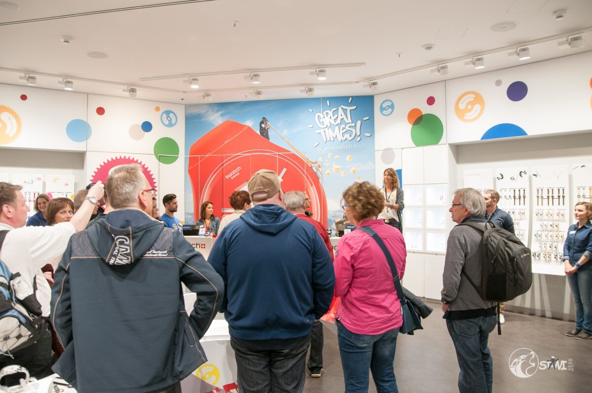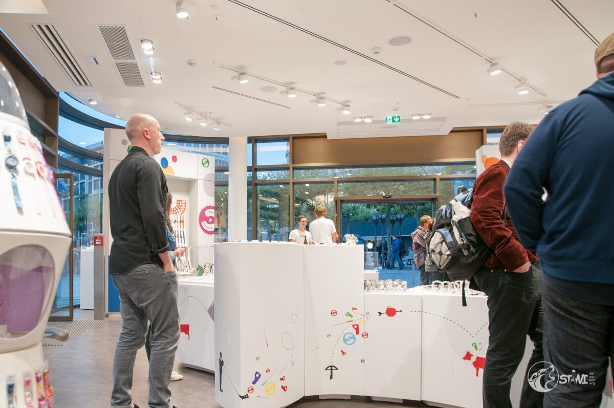 Der Empfang erfolgte im Store im Erdgeschoß. Anschließend ging es in den ersten Stock, wo die Swatch Club Member mit einem leckeren Flying Buffet versorgt wurden. Es trafen sich dabei neue, alte, bekannte und unbekannte Club Member aus Deutschland. Eine bunte Mischung, die großen Spaß machte. Das Highlight des Abends war natürlich die Enthüllung der zweiten Club Uhr 2015, THIS IS MY MAP.